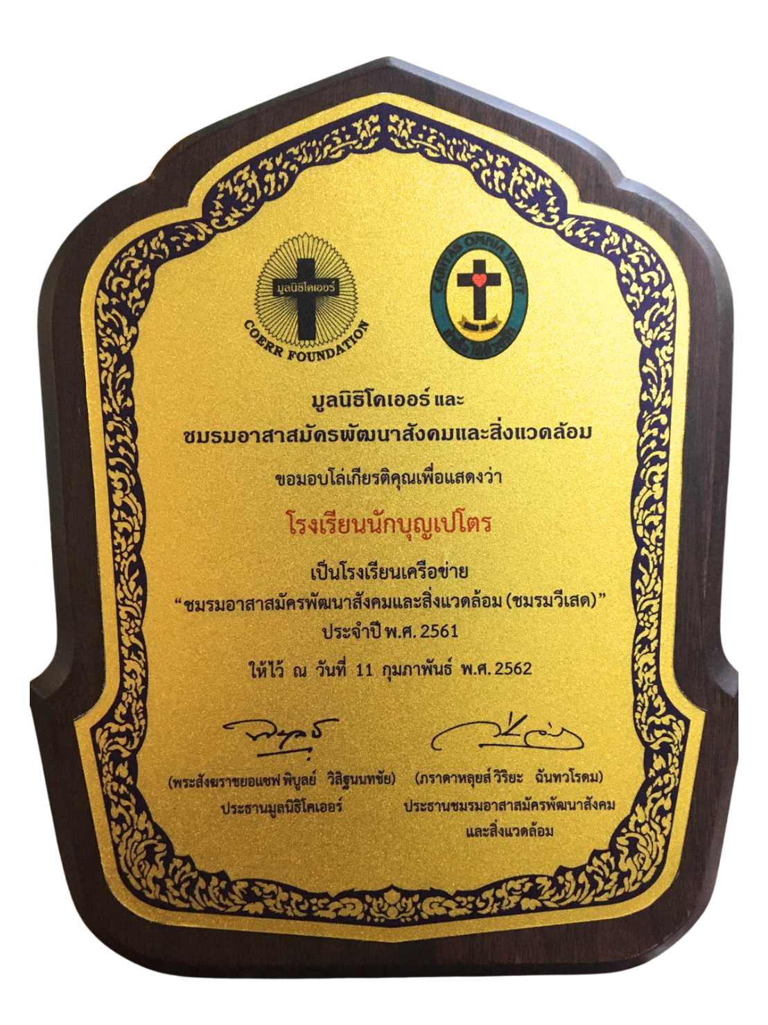 โล่เกียรติคุณ เพื่อแสดงว่า โรงเรียนนักบุญเปโตร เป็นเครือข่าย “ชมรมอาสาสมัครพัฒนาสังคมและสิ่งแวดล้อม (ชมรมวีเสด)” 11 กุมภาพันธ์ 25626 เมษายน 2026 admin ประจำปีการศึกษา 2562 โล่เกียรติคุณ เพื่อแสดงว่า โรงเรียนนักบุญเปโตร เป็นเครือข่าย “ชมรมอาสาสมัครพัฒนาสังคมและสิ่งแวดล้อม (ชมรมวีเสด)” ประจำปี พ.ศ. 2561 ให้ไว้ ณ วันที่ 11 กุมภาพันธ์ พ.ศ. 2562 มูลนิธิโคเออร์ และชมรมอาสาสมัครพัฒนาสังคมและสิ่งแวดล้อม admin