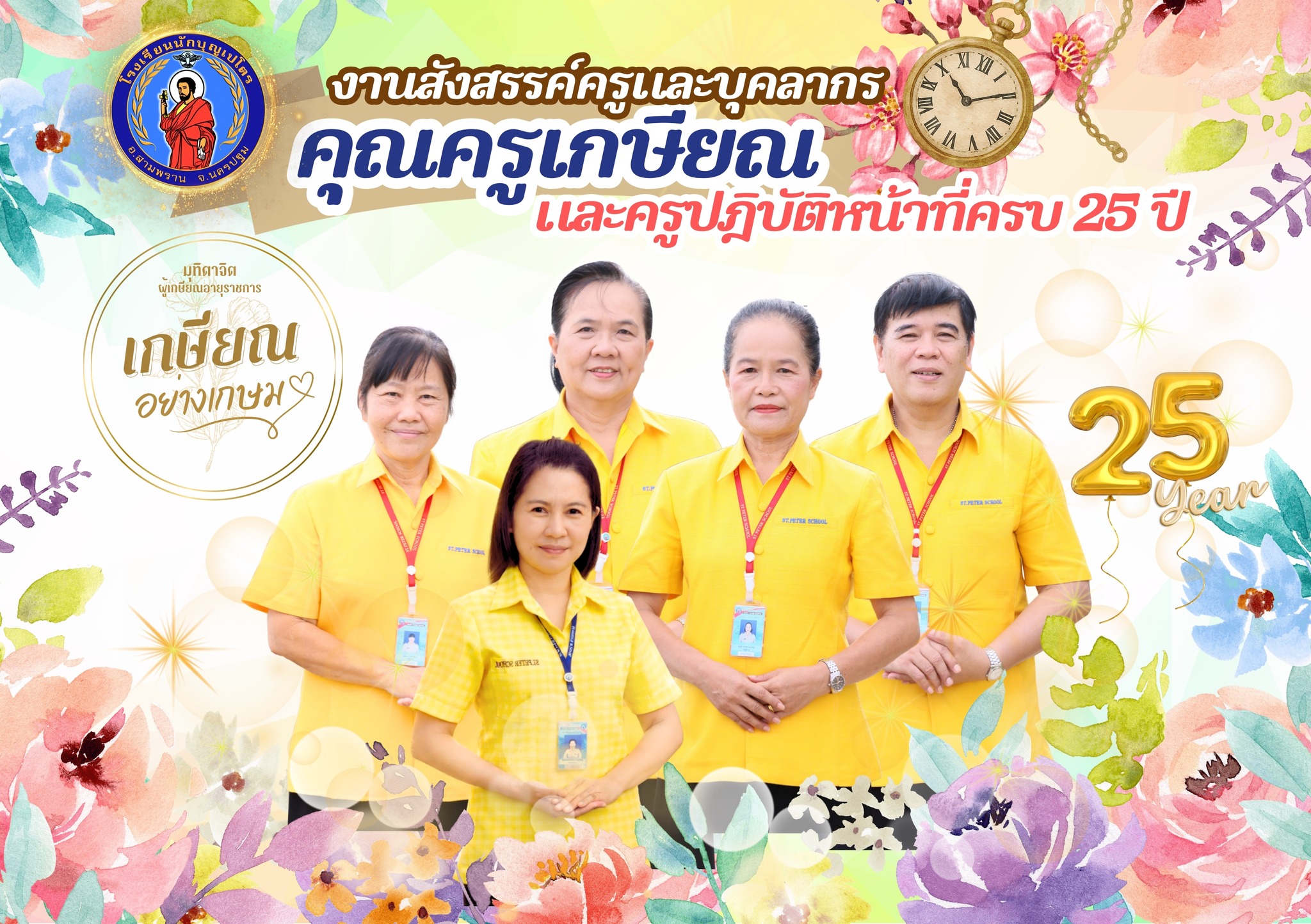 งานสังสรรค์ ประจำปี ของคณะครู บุคลากรและเจ้าหน้าที่ประจำปี 2568 งานเกษียณอายุคุณครู 4 ท่านและงานครบรอบการทำงาน นาน 25 ปี 1 ท่าน… ขอบคุณทุกท่าน สำหรับการเสียสละ อุทิศตน เพื่อเด็กๆ เพื่อวัดและโรงเรียน เพราะเราทุกคนคือครอบครัวลูกนักบุญเปโตร
