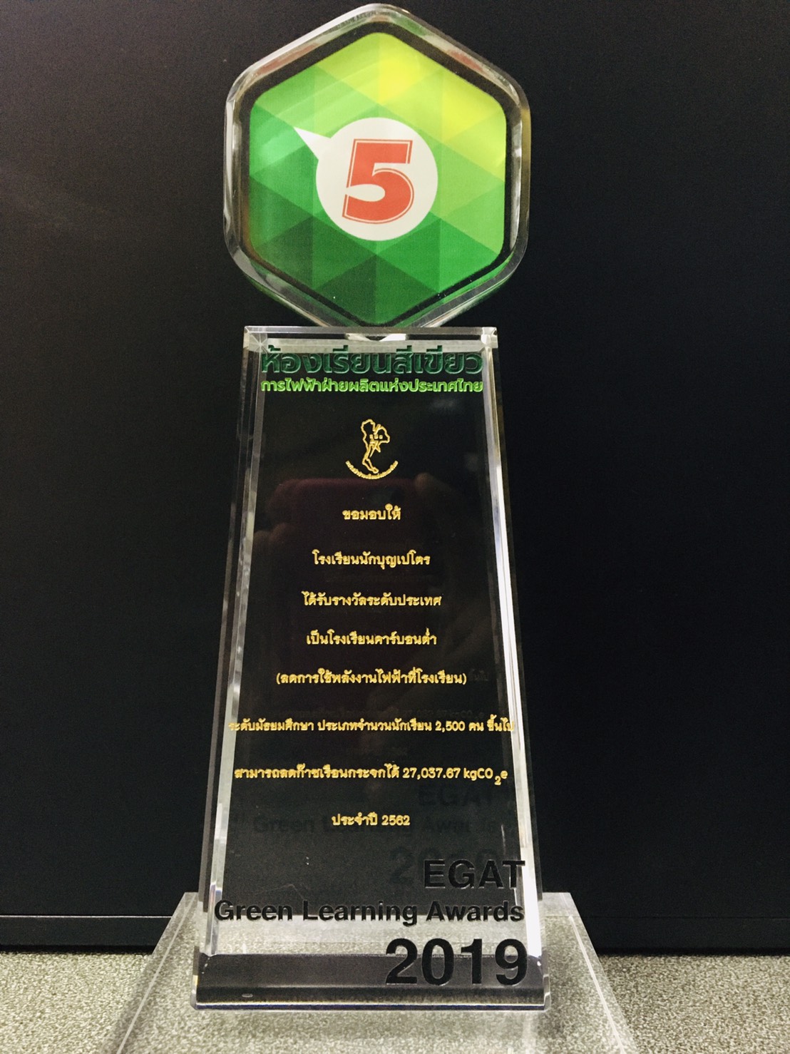 ได้รับรางวัล ระดับประเทศ เป็นโรงเรียนคาร์บอนต่ำ (ลดการใช้พลังงานไฟฟ้าที่โรงเรียน) ระดับมัธยมศึกษา